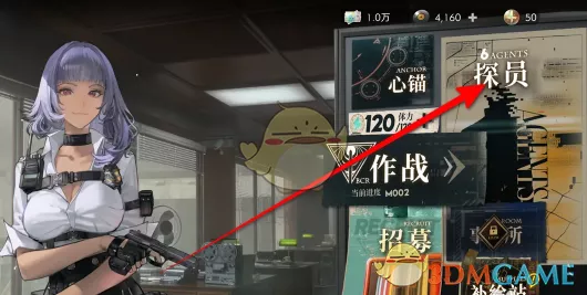 1、首先我们须要进去游戏主界面,在右上角的位置点击探员。