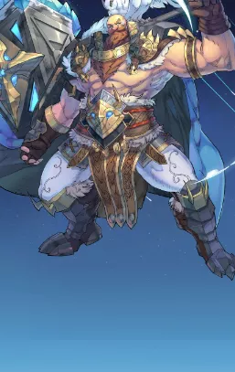 巨锤落下之刻,冰峰断灭之时。对敌方前排造成攻击140%的伤害,40%几率附加冰冻。每成功冰冻1个自标,比约恩恢复自身生命上限10%的血量。