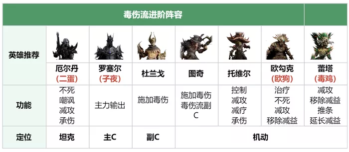 罗塞尔能源于敌人的毒伤层数追加高额伤害,是毒伤流派最强大的核心输出;
