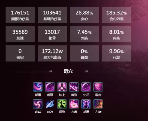 1、配装尽量堆根骨,会心纯疗随缘,新手推荐加速34056;