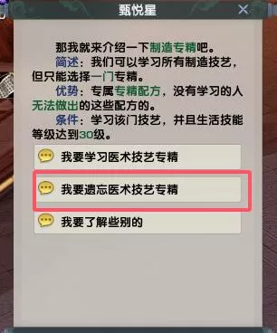 主城找已学技艺的【专精师傅】点【技艺专精-我要遗忘】即可