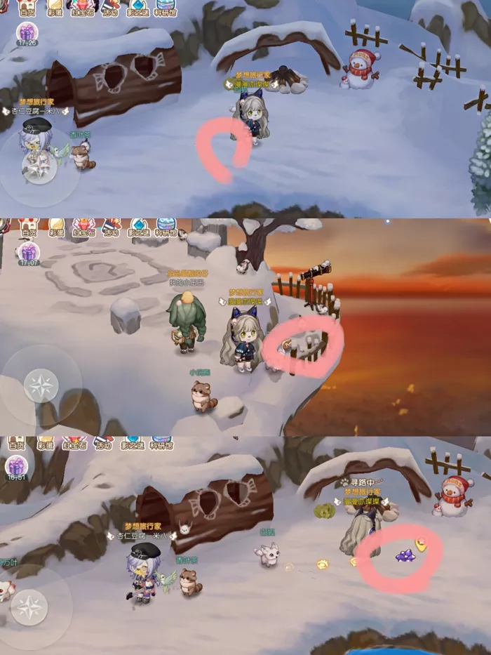 基于任务指引在青木森林和奥比斯雪山收集线索,如图所示。