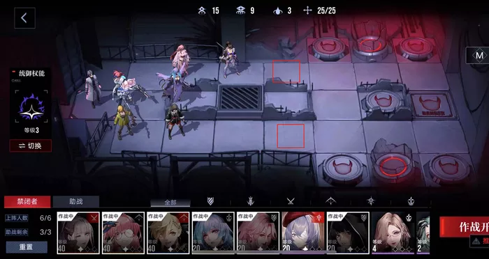 2、这个地方处理幻影的最好方法就是在幻影产生在我们的防御圈之外时,配合emp的技能,伯爵的豹子,以及白逸的技能和移动点数,让幻影直接炸在外面,这里的外圈是指下图所示,只须确保将豹子和白逸放在方框所示位置即可。