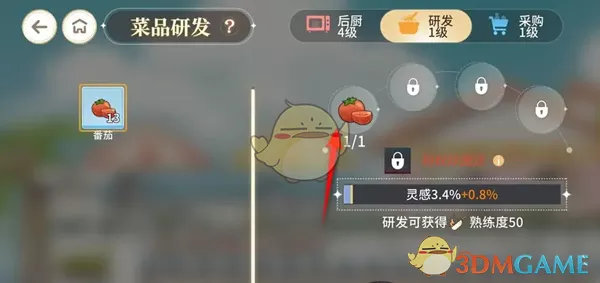 3、使用研发的锅和榨汁机功能,消耗番茄点击开始研发;