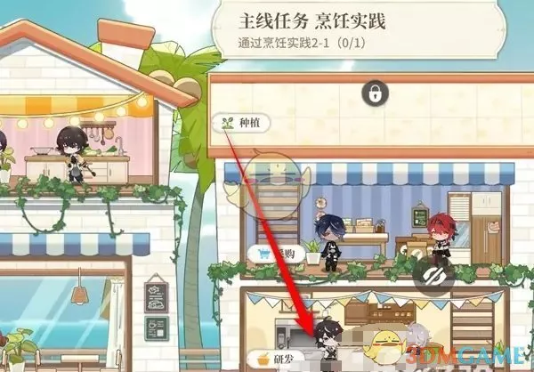 2、跟着在餐厅玩法中,点击研发功能前往;