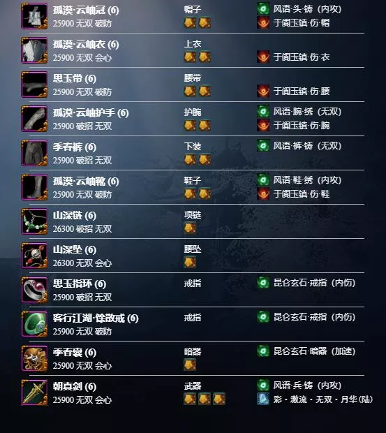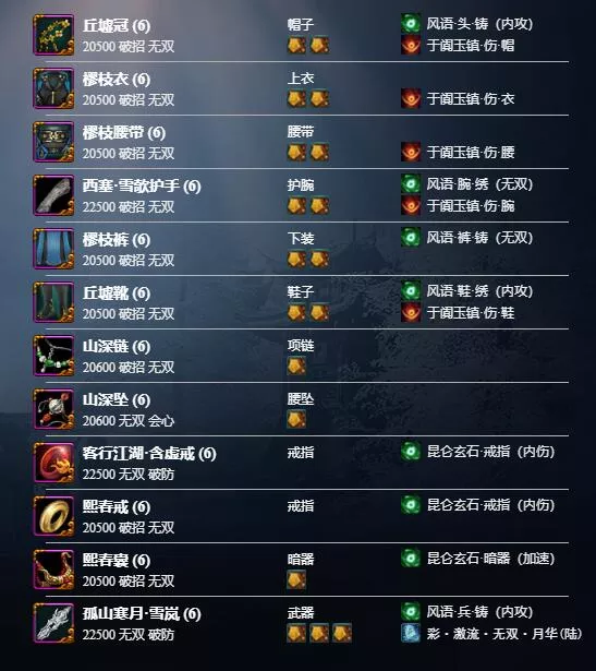 2、以下配装利用紫色附魔和八级五行石允许自行进行替换;