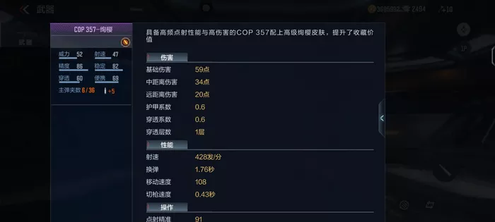 作为手游和端游副武器界的明星,COP357的打法也十分彪悍,近身刚枪,利用自身的轻巧威力又大的特点,即使是AK也完全不虚。