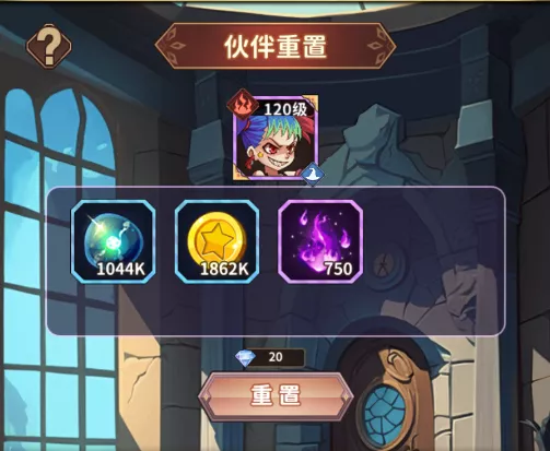 1、花费钻石对伙伴进行重置,取得返还资源;