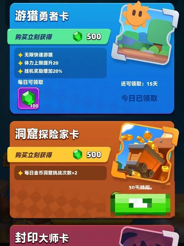 如果不想看广告,允许选取永久免广,大家是平民玩家,想要首次氪金,允许选取月卡,游戏中并不推荐基金,这个氪金的内容性价比十分的一般,只要玩家们特别缺资源的时候才允许氪金,还有就是提升自己的战斗力来获得装备符文和圣物。