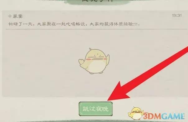 2、在弹出的家宴页面,点击下方的跳过夜晚选项;