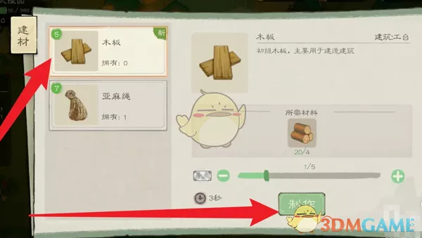 2、紧接着点击建材,选择木板进行制作,消耗木头点击右下角的制作即可获取木板。