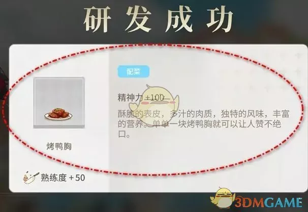 4、结尾等待研发完成,即可拿到烤鸭胸这个菜品;