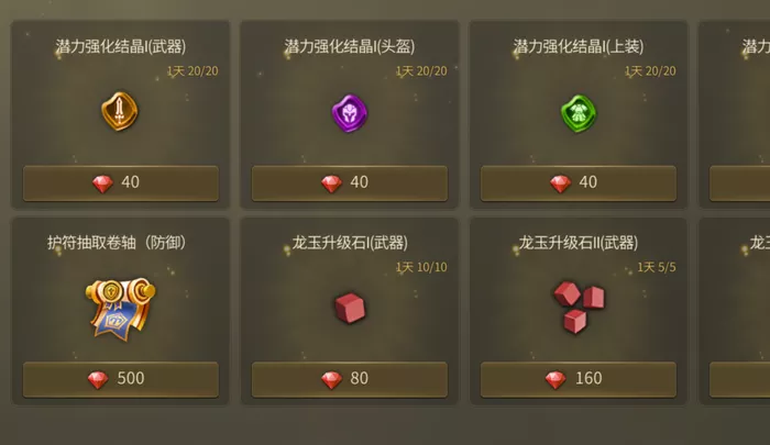可用于强化潜力、装备、龙玉等,帮助你在成长的道路上越来越强!