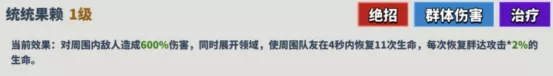 描述:对周围内敌人造成600%伤害,同时展开领域,使周围队友在4秒内恢复11次生命,每次恢复胖达攻击*2%的生命。