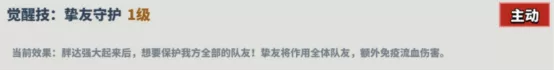 描述:胖达强大起来后,想要保护我方全部的队友!挚友将作用全体队友,额外免疫流血伤害。