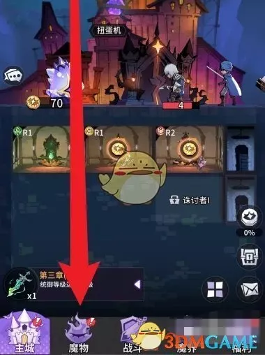 1、首先我们在游戏主页,点击下方的魔物前往详情页;