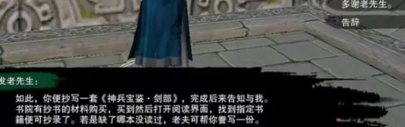 4、玩家需要读过《神兵宝鉴剑部》(没读过可行直接抄书)找到收书人提交;