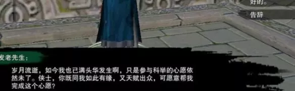 5、与【白发老先生】对话去参加一次科举考试回来继续对话即可完成任务。