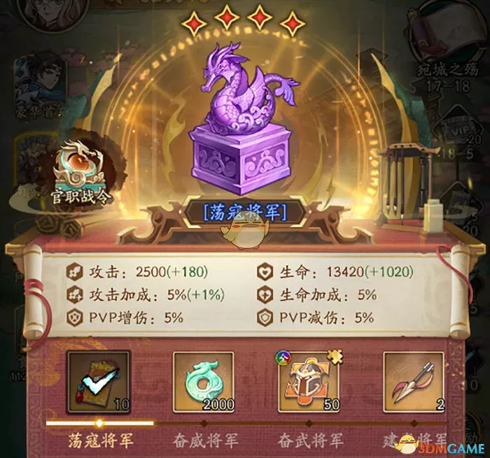 完成官职系统的任务挑战,随着官职的提升可概率获取风华录。