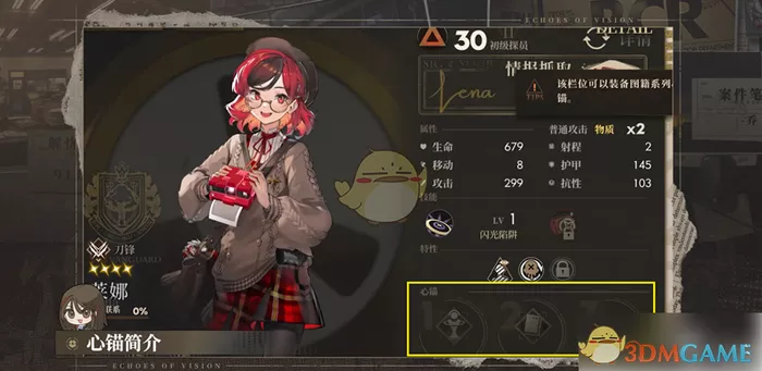 异象回声里的心锚也就是我们常说的装备,装备能通过增益词条,来为探员提供关卡外的面板属性,还可以通过装备属性,来为探员在关卡内提供额外技能。