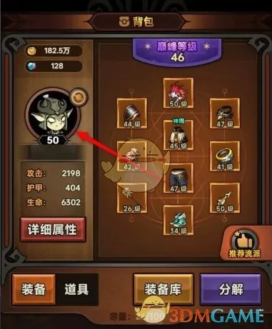 2、继续在背包页面,点击左侧的头像前往个人信息页;