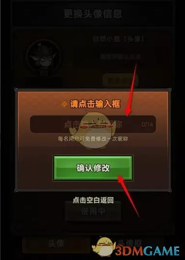4、最后我们在输入框内,输入新的昵称后,点击确认修改即可完成改名操作;