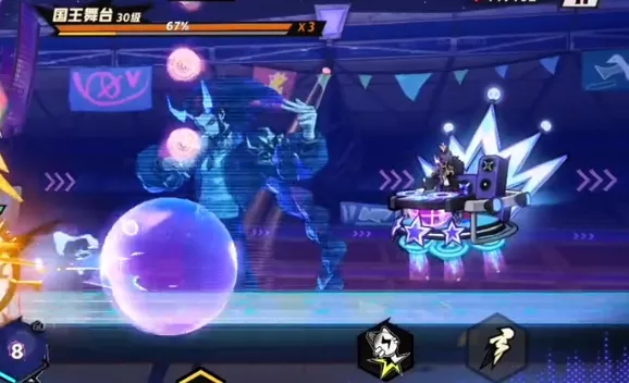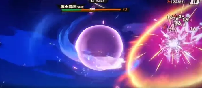 以后饕餮用新弹幕攻击,音波是非常难躲的,而且也没有办法阻挡。一旦在受伤以后,并且血量低于30%就会触发一个护盾。而到达后期,boss攻击节奏会逐渐的加快,在血线危机时可以直接更换殷果,释放一个技能以后就能迅速的拿到能量,虽然并没有触发逆鳞攻击,但是在贴脸放大以后就可以成功的将Boss打败,顺利的通过这一次的关卡。