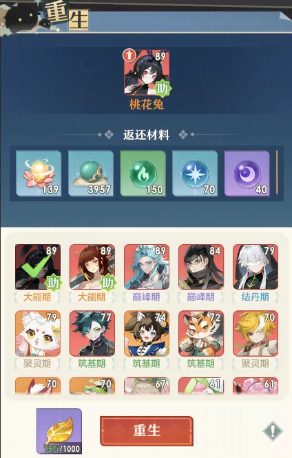 契灵培养很轻松,但是若是想换契灵了怎么办呢?全部重头养成本太高。此时,就能够用到游戏内的【重生】和【转生】功能了。