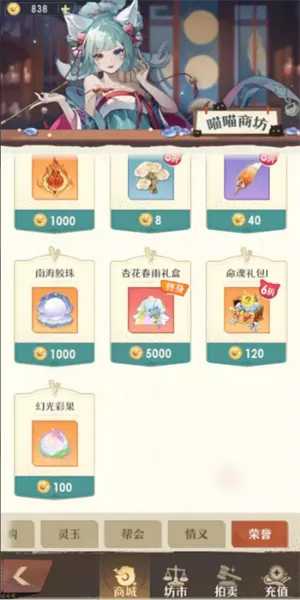 荣誉商店的道具以实用道具为主,其中有契灵提高境界所需的筑基/结丹/巅峰/大能御灵丹,还有识海节点材料、识海技能激活材料,以及命魂礼包。这些都是提高实力的重要道具。