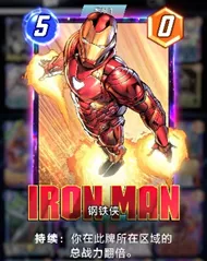 另外,作者在游玩的过程中发现很多卡牌的设计是极为有意思的,看过漫威电影的都知道钢铁侠本身是没有多少战斗力的,主要依靠强大的装甲来武装自己,那么游戏卡牌在设计的时候,也是结合了电影里的人物特征,给了钢铁侠这张牌0点的战力,和强大的区域翻倍战力的特殊能力。