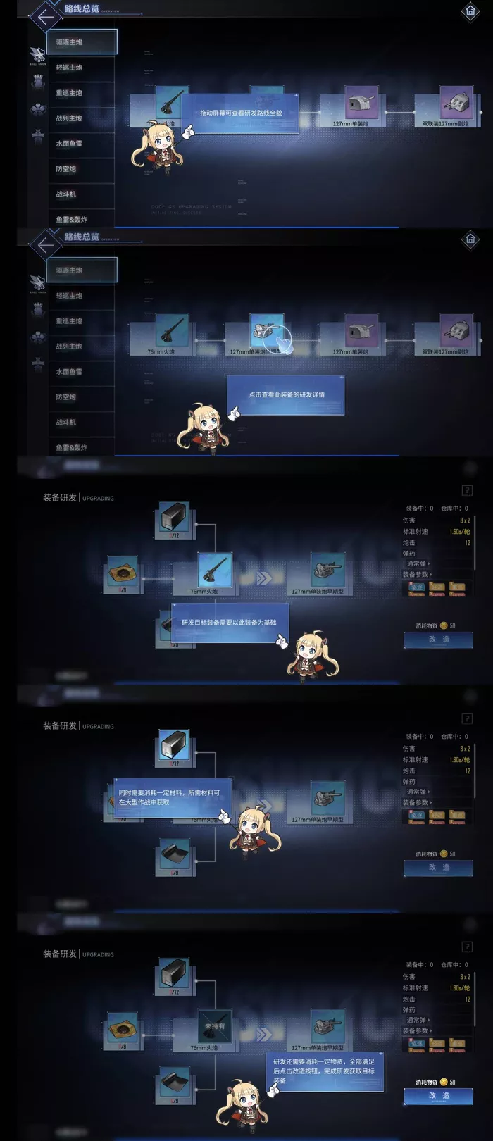 《碧蓝航线》装备研发升级有哪些玩法,详细攻略如下: