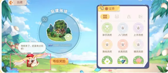 经验值是岛建等级的必要条件,但是想要解锁更多的玩法和内容,最重要的还是[资质],眼前奥比岛的岛主资质有6个等级,分别是新手、入门、上手、熟练、优秀以及最高级别的精英资质。当经验达到要求以后,点击头像,名字下方右侧的箭头就可以进去岛建界面。