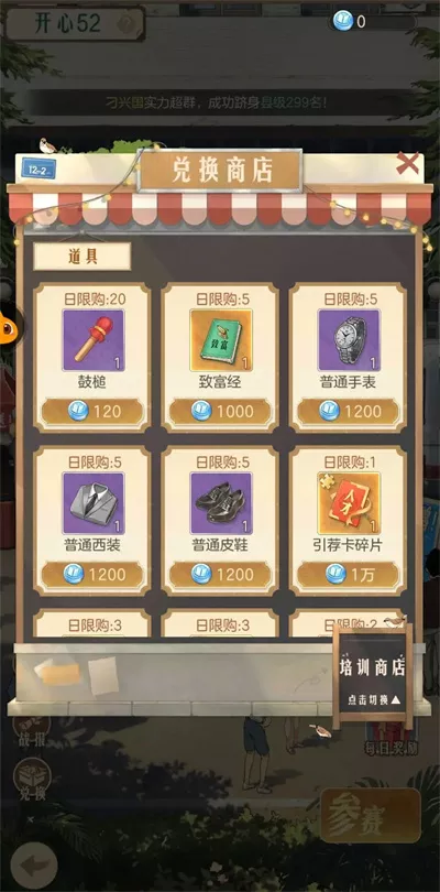 早期优先购买魅力道具、经验卡、人参、普通西装、普通皮鞋、普通手表、火车票(必买)