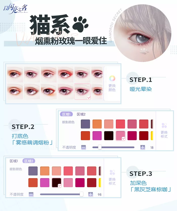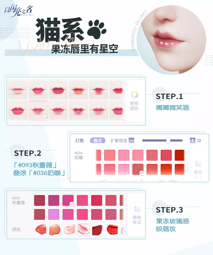 《以闪亮之名》猫系美妆分享攻略,详细攻略如下:
