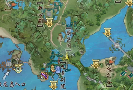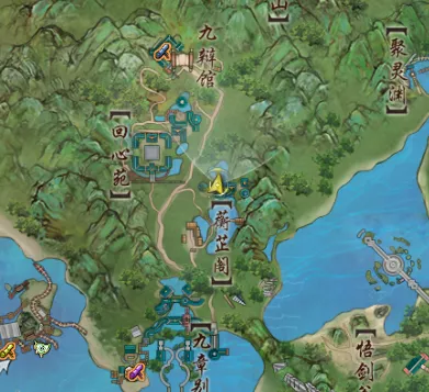 1、前往蓬莱九章别院和蘅芷阁之间的湖泊,在瀑布上方平台找到王吒。
