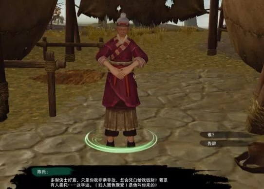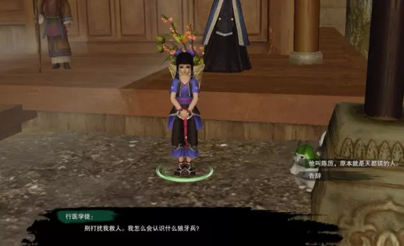 2、接下来去茶馆找【陈氏】对话,回大树旁找【行医学徒】;