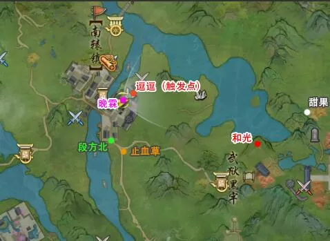 1、奇遇触发后去找【逗逗】和【晚霖】对话,随即去大树底下的光圈互动;