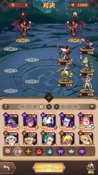 2、玩家需要设置3支队伍进行进攻或防守每队至少上阵1名伙伴;