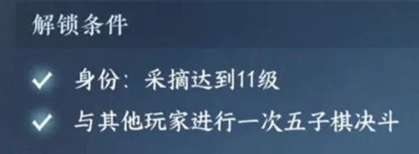 需要完成五子棋对弈和采摘等级达到11。
