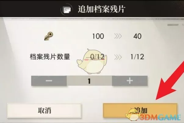 4、最终挑选追加数量,点击确定即可完成当档案残片的追加。
