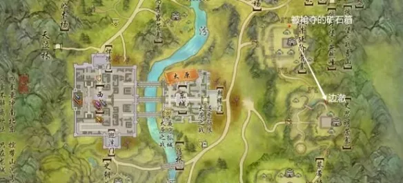 5、去太原矿场点对话【边澈】,去牛廷阶营寨左上栅栏边上取得【被抢夺的矿石箱】;