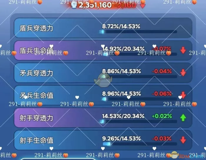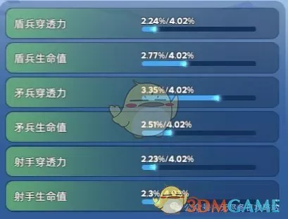2)需要基于自己的升级发展方向去洗练;盾弓流优先洗盾兵生命值与射手穿透力;盾矛流优先洗盾兵生命值与矛兵穿透力;