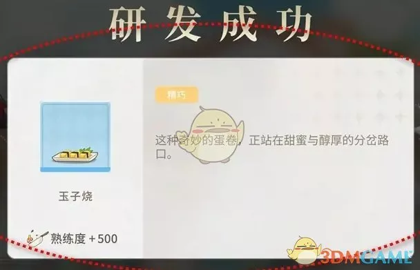 4、随即点击开始研发,即可研发获得玉子烧这个菜品;