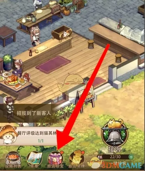 2、接下来在厨房玩法内,点击左下角的旅店珍宝选项;