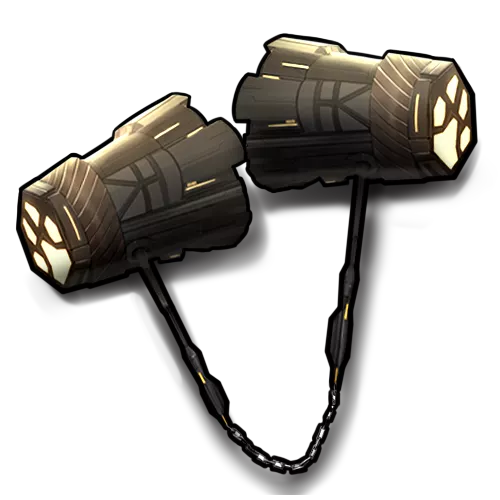 萨哈拉支部所属学院自研武器。外形是一对拥有一定的重量和硬度的双锤。是学院对现有的制式装备进行的改良,足以在战场上对抗低等原罪的入侵。锤上的猫爪图案是天天要求的特别涂装。 “看我用这两个锤子把它们做成汉堡肉饼。”