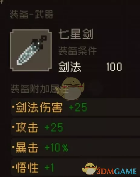 4、七星剑:悟性 1,刺杀颜雍后,选取回破庙与师兄颜雍切磋,得到胜利即可得到。