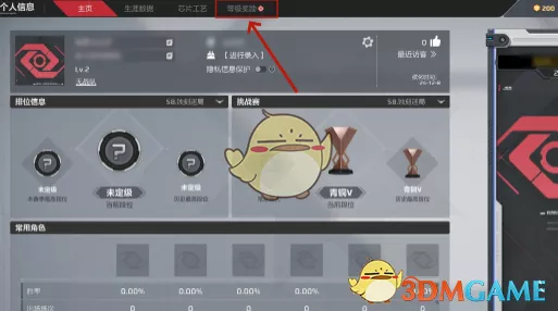 2、点击头像即可进入个人信息页面,在上方的导航栏中点击等级奖励进入。