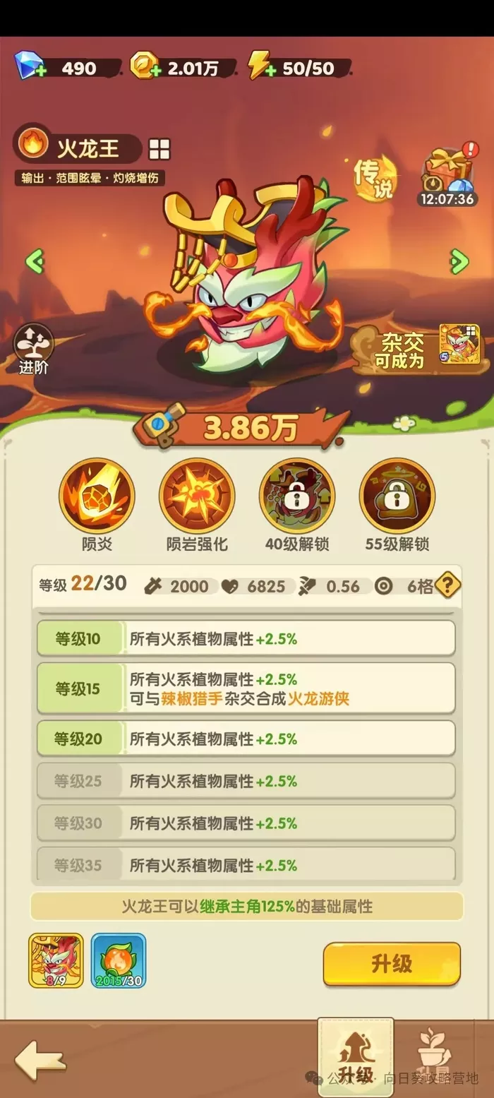 火龙果的强度在于他超强的范围控制能力和不俗的持续输出能力,火龙果的输出主要依赖于他的火坑,而在55级后更可行解锁控制能力,实战触发效果极为好,对boss也能硬控不短时间,而在杂交后更是可行使用辣椒的分裂箭和持续灼烧,为打boss也提供了比较可观的持续灼烧伤害。