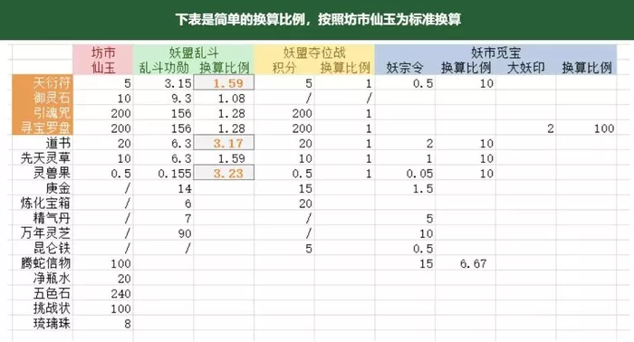 可以看到,妖盟荣誉商店和坊市换算比例是相同的,但无法换取御灵石;