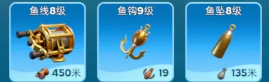 1,鱼线:升级鱼线能增加鱼钩下潜的最大深度。